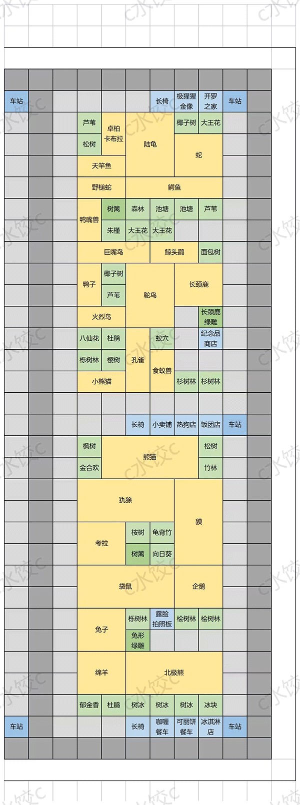 该布局涵盖全部56个特殊区域,饲养圈生态均符合动物的偏好需求。